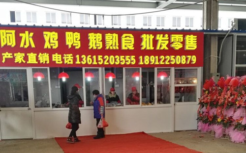 12月28日上午,豬肉交易區內人潮涌動,熱鬧異常,阿水熟食門店在肉類區開業。明亮的廣告牌,干凈的操作間,熟牛肉、爆魚、香蔥雞、鹽水鴨分門別類的放在出樣臺上,飄出陣陣香味,吸引著廣大食客。據老板介紹,開業期間有優惠活動,所有食品一律八八折,免費試吃,好吃再買。