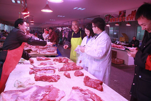 12月和1月是豬肉消費旺季,臘月20前,買前胛肉和后胛肉的多,主要是灌香腸和腌咸肉,臘月20以后買五花肉做虎皮肉喝肉丸的多,通農物流圍繞“保供穩價”、“食品安全”兩大重點,嚴把豬肉價格關、質量關,目前分割肉均價13元/500克,白條肉11.8元/500克,價格穩定。