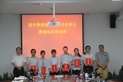 授課結(jié)束后,張林芳副主任宣讀了“南通農(nóng)副產(chǎn)品物流有限公司關(guān)于表彰2016年度優(yōu)秀通訊員的通報(bào)”。集團(tuán)公司黨委書記、通農(nóng)物流黨總支書記張兆成和曹德軍老師,為黨群辦居媛媛、施婧婧,蔬菜部張麗、徐黎,綜合部吳穎,檢測(cè)中心錢雪鈺,冷鏈配送高俊燕,干貨區(qū)吳珍鳳八位優(yōu)秀通訊員頒獎(jiǎng)。