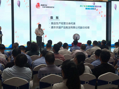 南通通農(nóng)農(nóng)副產(chǎn)品配送有限公司副總經(jīng)理袁東作為食品生產(chǎn)企業(yè)代表參加了本次啟動儀式,并進行了發(fā)言。袁總主要從食品生產(chǎn)者的角度出發(fā),從如何落實好食品安全主體責(zé)任、如何嚴(yán)把食品生產(chǎn)關(guān)保障食品安全、如何立足自身當(dāng)食品生產(chǎn)企業(yè)行業(yè)模范等方面講述了企業(yè)對食品安全肩負的社會責(zé)任和法律責(zé)任,并承諾在南通創(chuàng)建食品安全示范城過程中,通農(nóng)冷鏈配送將嚴(yán)格執(zhí)行并貫徹好《食品安全法》各項要求,強化責(zé)任意識、擔(dān)當(dāng)意識、自我監(jiān)督意識,以實際行動為食品安全城市創(chuàng)建作出應(yīng)有的貢獻。(冷鏈配送 高俊燕)