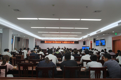 為貫徹落實(shí)十八屆中央紀(jì)委七次全會(huì)精神,強(qiáng)化黨內(nèi)監(jiān)督,規(guī)范黨內(nèi)民主,不斷強(qiáng)化以通農(nóng)物流黨員干部管黨治黨的政治責(zé)任,增強(qiáng)全體黨員領(lǐng)導(dǎo)干部遵紀(jì)守紀(jì)的意識。根據(jù)集團(tuán)公司的統(tǒng)一部署和要求,結(jié)合通農(nóng)物流實(shí)際,9月28日下午,通農(nóng)物流在綜合展銷樓四樓會(huì)議室召開“算好廉政賬”專題教育月大會(huì),交易區(qū)正副經(jīng)理、經(jīng)理助理、各職能部門副科長(含)以上管理干部及全體黨員共77人參加了會(huì)議。會(huì)議由總經(jīng)理助理、市場部總經(jīng)理張勇主持。