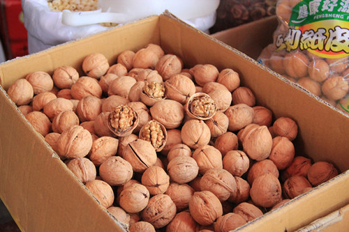 新上市的核桃價格略有下跌。在保興棗業(yè),特級新疆紙皮核桃皮薄果肉滿,去年零售18元/斤,今年只賣15元/斤,價格下跌兩成。而特級新疆若羌棗基本也在15元/斤。攤主王老板解釋說:“現(xiàn)在人們的生活條件好了,越來越懂得養(yǎng)生,種植戶拿準(zhǔn)了消費者的這種心理,加大了棗樹、核桃樹種植力度,產(chǎn)量一高,價格自然就降下來了。”