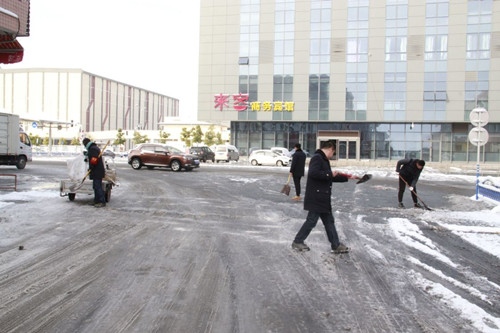 1月25日大雪過后,26日早晨道路結冰,來往市場的人流量較大。為保障前來市場采購年貨的消費者、進貨商及在市場經營的商戶的出行安全,干貨區安全秩序管理人員及現場員工在經理助理范一凡的帶領下,不畏嚴寒,分片負責,在5、6、7號大廳中間及兩側主干道上奮力推雪、鏟雪、掃雪。在所有人員齊心協力的共同努力下,經過了2個多小時,主干道等重要路口的積雪被掃除,減少了意外事故的發生。(干貨部 吳珍鳳)