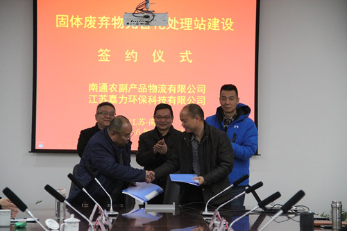 隨著通農(nóng)物流經(jīng)營交易規(guī)模與范圍的逐步擴(kuò)大,市場內(nèi)各類垃圾產(chǎn)生量也逐漸增多,為進(jìn)一步優(yōu)化市場環(huán)境,通農(nóng)物流在2017年年底就將垃圾處理站建設(shè)納入計劃,今年3月6日,在通農(nóng)物流展銷樓5樓會議室,南通農(nóng)副產(chǎn)品物流有限公司副總經(jīng)理闞君成與江蘇嘉力環(huán)保有限公司總經(jīng)理?xiàng)钛复砗献麟p方正式簽署了“固體廢棄物無害化處理站建設(shè)”的合作協(xié)議。崇川區(qū)區(qū)委常委張祖春、南京工業(yè)大學(xué)教授趙龍章和通農(nóng)物流總經(jīng)理曹俊等相關(guān)領(lǐng)導(dǎo)見證了此次簽約儀式。