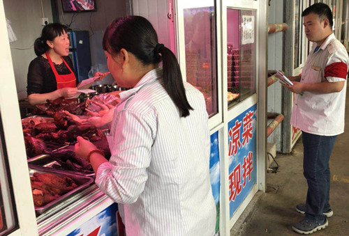 隨著夏日氣溫的逐漸升高,又多暴雨天氣,蚊蟲肆虐,熱應(yīng)激及飼料不同程度存在霉菌毒素污染的現(xiàn)象,導(dǎo)致豬集體免疫力的不穩(wěn)定,容易導(dǎo)致豬生產(chǎn)性能的下降和各種疾病的發(fā)生。為此,豬肉區(qū)組織員工對各經(jīng)營戶進(jìn)行食品安全知識的宣傳,嚴(yán)把豬肉進(jìn)場關(guān)口,要求“兩證兩花”必須齊全,人、證、貨必須保持一致,嚴(yán)禁“注水肉”、“瘦肉精肉”、“注膠肉”等不符合食品安全要求的豬肉進(jìn)場銷售,并且要求經(jīng)營戶向顧客公示每日的肉品《動物檢疫合格證明》和《肉品檢驗合格證》,確保老百姓在通農(nóng)物流的豬肉區(qū)能買到放心肉,保障餐桌上的安全。(水產(chǎn)部 沈露)