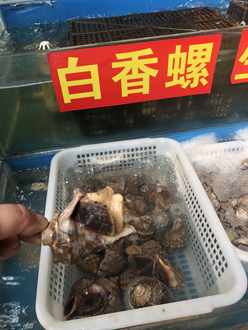 在購買螺螄的時候要選擇外殼呈青色,且有一定光潔度的螺螄。太大的螺螄肉質(zhì)粗糙,太小的又食之不甘。一般選個頭不大不小,殼的顏色是褐色里透著黃綠色的螺螄。與此同時,除了帶殼的螺螄外經(jīng)營戶還準備了大量的螺螄肉,節(jié)約了消費者的時間?,F(xiàn)在的螺螄價格也是非常優(yōu)惠,每斤2.5—3元。白香螺在33—35元/斤,相思螺分大小,大的35元左右/斤,一只大約半斤重,小的相思螺30元/斤。花螺70元左右/斤,海螺28—30元/斤。(水產(chǎn)區(qū) 陳珊珊)