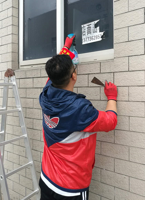 本次整治活動主要針對商業樓、服務樓等墻面上、玻璃上胡亂張貼的小廣告進行清理,小廣告不僅影響交易區美觀,其中包含的某些信息還會導致經營戶或消費者上當受騙,鏟除小廣告勢在必行。在清理現場,現場管理人員不怕臟不怕累,拿著小鏟、清潔劑等工具,對外墻體上的小廣告進行了徹底清理。
