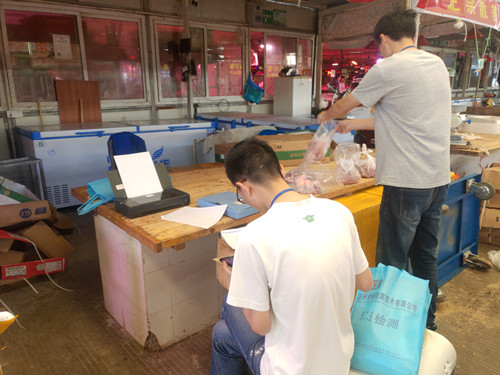 5月28日,市市場監(jiān)督管理局委托檢測機構對通農物流進行抽檢。在水產區(qū)現(xiàn)場工作人員的帶領下,檢測人員抽檢了豬肉、牛肉、淡水魚、蝦4種水產品。現(xiàn)場經營戶也積極配合,對食品安全工作非常認同。