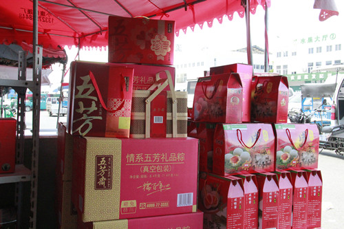 記者在走訪中發(fā)現(xiàn),選粽子大家還是比較傾向于品牌產(chǎn)品。一些品牌粽子也根據(jù)市場(chǎng)需要,推出豐富精美的禮盒,批發(fā)價(jià)在四五十元到兩三百元不等。