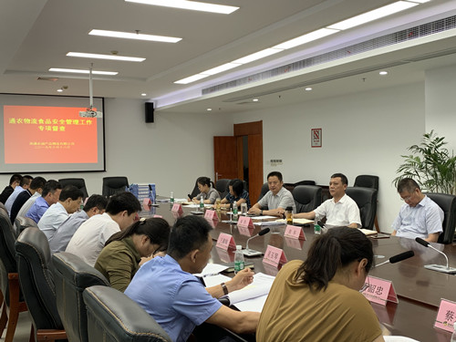 6月18日,市市場監督管理局食品經營處處長蔣寶祥等一行蒞臨通農物流,對2019年上半年食品安全管理工作進行專項督查。通農物流總經理徐徑、副總經理姜浩等陪同。