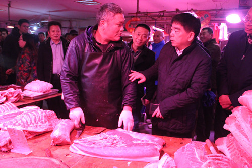 趙聞斌副市長來到通農物流分割肉交易區,親切詢問了經營戶現在的銷售情況,經營戶馬衛東高興的告訴趙聞斌副市長,節前銷售情況很好,肉價雖然比以往上去了點,但市民消費需求依舊旺盛,購銷兩旺!