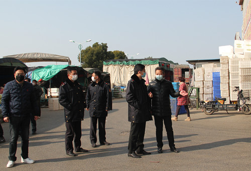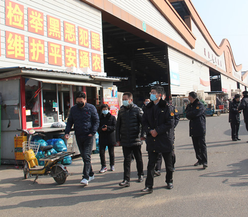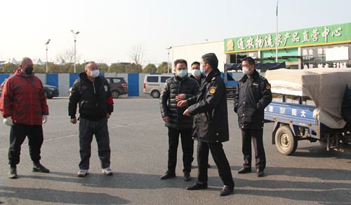 通農(nóng)物流總經(jīng)理徐徑首先向黃局長介紹了通農(nóng)物流在市場內(nèi)采取的防疫手段和防疫方法,黃局長也對通農(nóng)物流市場的防疫工作表達了肯定,不論是不斷循環(huán)提醒的揚聲器,還是隨處可見的指使標牌和逢車必檢的工作人員,黃局長都對通農(nóng)物流接地氣的宣傳方式表示了贊賞。黃局長強調(diào),要全面調(diào)動市場內(nèi)所有的宣傳資源,一定要用經(jīng)營戶們理解的通俗易懂的方式方法向他們宣傳防疫的重要性,杜絕形式主義!蔬菜區(qū)經(jīng)理呂劍表示,特殊時期蔬菜區(qū)也重新安排了工作人員,在人員數(shù)量上做減法,減少人員流通,但在工作內(nèi)容上做加法,人員雖然減少但絕不耽誤工作。