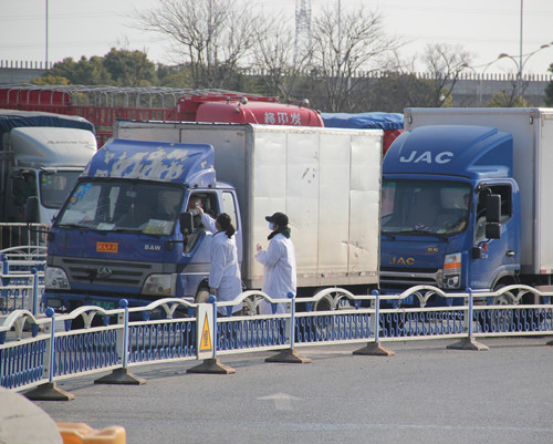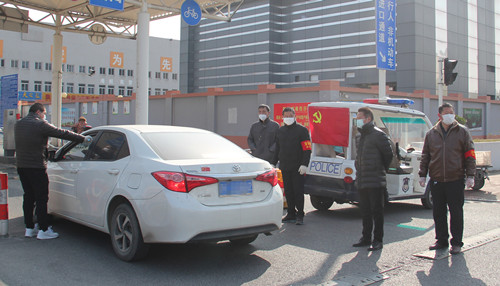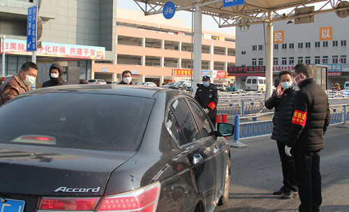 徐總首先去了處于防疫一線的兩個閘道口,這里由安保部安排了人員依次為進入市場的人測量體溫和檢查口罩佩戴情況,遇到外地牌照車輛一一登記在案,并設有醒目的指示標牌和揚聲器循環提醒進場人員配合檢查。徐總強調,現在是特殊時期,一定要逢車必查,逢人必檢。期間正好有一位來市場進貨的車輛駕駛員對因為要測量體溫導致進場速度變慢表示不滿,徐總和安保人員一起向他耐心解釋,仔細勸解,最終他也表達了對我們市場工作人員工作的理解。