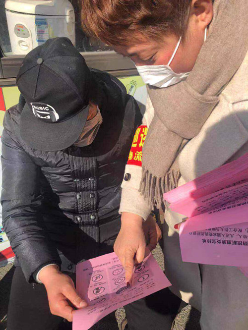 在各主要進出口要道懸掛防控病毒告示,安排專人每半小時進行巡查、宣傳工作,發(fā)放《防控病毒宣傳單》,使廣大經(jīng)營戶了解疫情的最新情況,作好個人防護措施和預(yù)防,增強經(jīng)營戶及員工是安全保護意識。(水果區(qū) 顧艷慧)