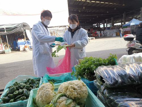 自疫情以來,通農物流進一步加大食品安全快速檢測頻率,聯(lián)合第三方食品安全檢測機構重點對糧食加工品、食用油、蔬菜、畜禽肉、水產品等人民群眾日常消費量大的食品品種的抽檢,重點檢測農獸殘、污染物、微生物、真菌毒素、重金屬等項目。疫情期間共檢測農產品29058批次,合格率為99.73%。近期根據(jù)南通市市場管理局的要求,檢測中心將韭菜作為重點品種進行農藥殘留和腐霉利殺菌劑專項檢測,同時與法檢機構做好有效銜接,加大了對不合格批次的法檢力度。做好檢測不合格產品處置記錄與產品溯源工作,對不合格產品,嚴格按照不合格品的處理流程,規(guī)范處理,及時控制和消除風險隱患。
