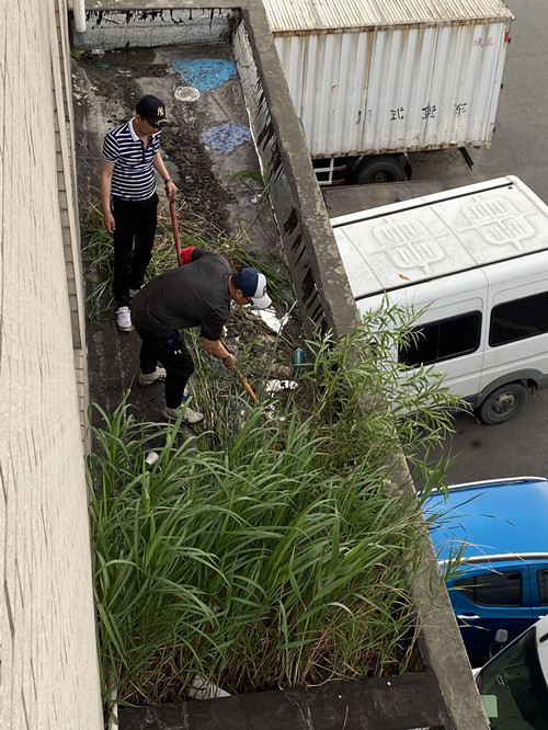 隨著氣溫持續升高,草木生長旺盛,雜草長勢更是“驚人”,最易引起蚊蟲聚集和火災隱患的發生,為全面提升轄區內的經營環境,減少安全隱患,5月28日下午,干貨區管理員謝飛飛帶領班組長朱燚主動清理三號樓二樓外側平臺的雜草。在清理過程中,天氣炎熱,平臺積水潮濕,地面泥濘臟亂,樓板面堅硬等都給雜草清理帶來了很大的難度,但二人絲毫沒有畏難情緒,采用鏟、撥、手檢等方式堅持將雜草和聚集的雜物清理干凈,用實際行動維護著交易區的安全穩定。