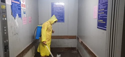 水果區重啟每日消毒制度,每天用84消毒劑對市場內部進行消毒,對市場內的樓梯間、電梯間、衛生間等重點區域進行噴灑。配備專門的噴灑人員,垃圾做到日產日清,保持市場內干凈整潔。辦公區域適時進行通風,保持市場內空氣通暢,噴灑時消毒人員做好相應的個人防護措施。