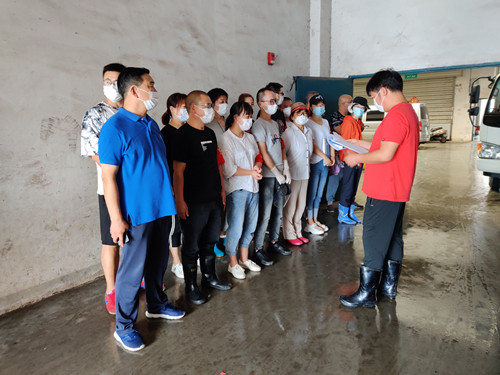 6月28日中午,為貫徹落實上級新冠肺炎疫情防控工作部署,切實提高水產肉類交易區應對疫情突發情況的快速反應,規范處置,聯防聯控的能力,做到疫情防控“早發現、早報告、早隔離”切實保障人民群眾的身體健康和生命安全,水產肉類交易區召集所有上下午班工作人員舉行了新冠肺炎疫情防控應急演練。演練主講人:繆亞山,演練內容: