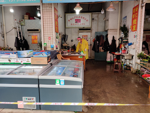 (1)工作人員體溫槍測量水產大廳A13店面從業人員體溫異常,立即上報組長,并通知現場應急小組。