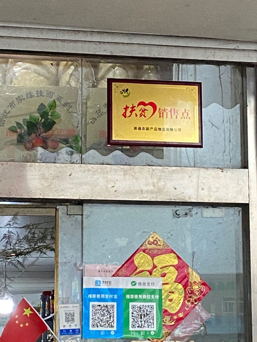 經上級主管部門批準,干貨區榮獲“扶貧銷售點”殊榮,10月26日,“扶貧銷售點”正式在A23李桂芬、C02陳銀鎖及糧油18號盧盼三家商戶店鋪醒目位置掛牌。