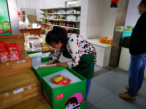根據11月5日部門開展的安全例會要求,對配送商戶“一票通”及進貨票據是否符合“九個要”的規(guī)定標準進行大檢查,同時惠生門店的經營區(qū)域也要進行定期巡查。昨日下午,經理邢楠楠帶領工作人員對惠生門店進行巡查。