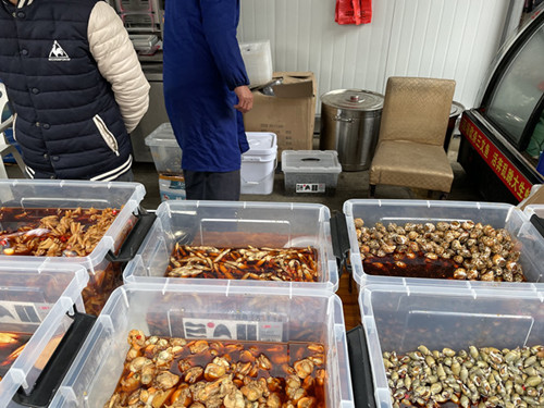 為了豐富水產(chǎn)肉類交易區(qū)經(jīng)營(yíng)品種,滿足老百姓一站式購(gòu)買配套需求,方便老百姓,水產(chǎn)肉類交易區(qū)近期又在水產(chǎn)大棚中間過(guò)道新增3間店面(經(jīng)營(yíng)項(xiàng)目符合食品安全要求,且品種不與交易區(qū)店面、攤位發(fā)生大的沖突),其中一家經(jīng)營(yíng)即食海鮮的店面已經(jīng)開始營(yíng)業(yè),主營(yíng)腌制好的蝦、魷魚須、象拔蚌、泥螺等即食海鮮,為老百姓帶來(lái)了便利。剛開業(yè)沒(méi)幾天,即食海鮮就很受消費(fèi)者歡迎,剛買完大魚大肉的老百姓,都要來(lái)買些不一樣的即食海鮮回家嘗嘗,享受即將過(guò)年的喜悅。(水產(chǎn)區(qū) 陳旭鵬)