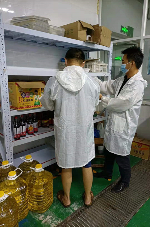本次檢查主要以食品安全、用電安全兩方面為主,針對以往檢查中安全問題頻次高的商戶進行重點檢查。曹經理、陸主辦及工作人員先后對康弘餐飲、新鮮達及云龍配送三家商戶倉庫內進行檢查。經檢查發現用電安全方面,商戶仍存在室內充電的現象;食品安全方面,個別商戶存在食材過期存放未及時處置的現象。針對該現象,曹經理對商戶進行現場安全教育并當即采取措施,要求工作人員將過期的食材進行清空,暫且放在監管倉庫內,同時根據安全管理規定采取相應的處罰。另外,工作人員在檢查商戶索票索證方面,發現仍然還存在部分票據票證不齊全、供貨商票據信息未填完整、印章未蓋的情況,對此進行現場口頭教育并要求將不完整的票據信息及印章于三天內補齊,確保索票索證的信息完整。