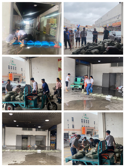 據氣象臺發布的最新消息,臺風“煙花”已從浙江一帶登錄,正在影響我市,預計未來24小時內,我市大部分地區將出現6小時內50毫米以上的強降水。因糧油綜合大樓通道較多,受臺風影響,多個通道內已出現小面積積水情況,為避免商戶的財產安全遭受損失,干貨區立即啟動應急預案并向公司上報,申請領用沙袋。
