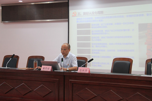 9月26日,通農物流黨總支組織各部門、各交易區正副經理、全體黨員召開“算好廉政賬”專題教育大會,會議由黨總支副書記、工會主席張林芳主持,會上觀看了廉政警示教育視頻《折翼的青春》。