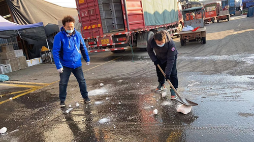 12月25日以來(lái),通城持續(xù)降溫,寒冷的天氣給大家的出行帶來(lái)了極大不便。為做好雨雪冰凍天氣的防范工作,防止早晨氣溫下降發(fā)生結(jié)冰現(xiàn)象,蔬菜部緊急啟動(dòng)防雪抗凍應(yīng)急預(yù)案,準(zhǔn)備工業(yè)鹽、除雪鏟等防雪抗凍物資,組織工作人員對(duì)交易區(qū)內(nèi)及道閘地磅等地方面進(jìn)行撒鹽融冰處理并加大巡查力度,確保交易區(qū)道路的安全暢通。(蔬菜區(qū) 陸新新)