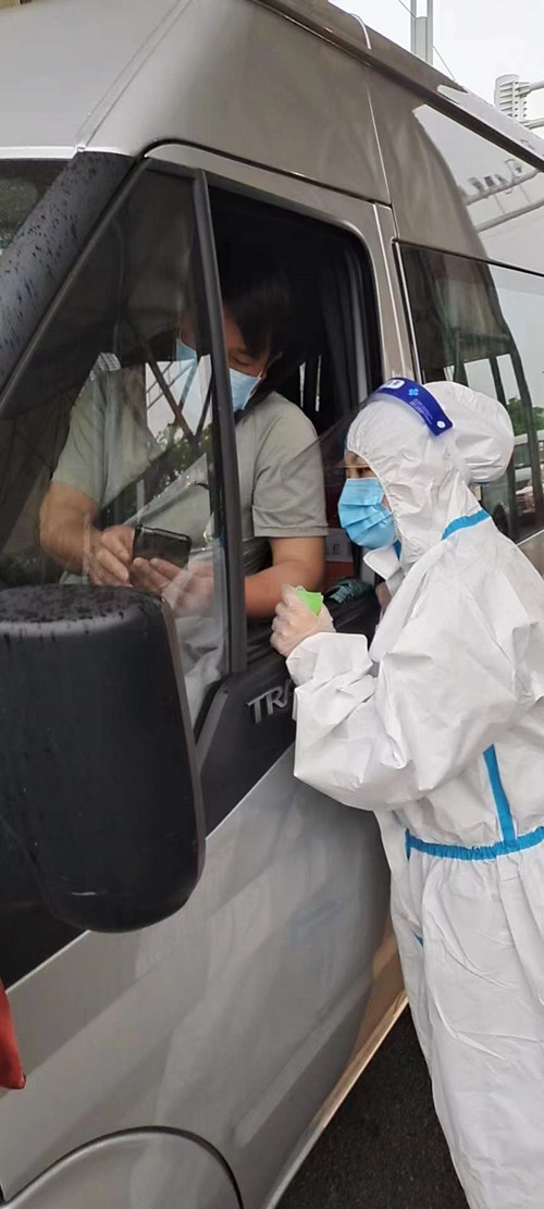 當每天脫掉防護服的那一刻,沒有人喊累,她們用實際行動踐行著責任和擔當,用自己的一份力量為公司疫情防控“守好門”。(配送中心 嚴勻蔓)