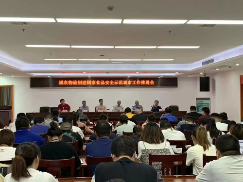 7月26日,通農物流召開創建國家食品安全示范城市工作推進會,各交易區經理和管理員50余人參加會議。