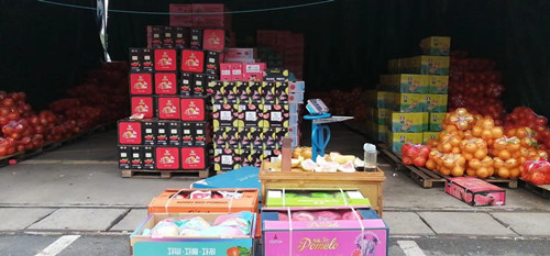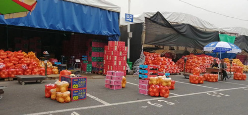 水果交易區的柚子現階段主要來自福建平和縣的琯溪三紅蜜柚。福建土壤肥沃,空氣好,日照強,種出的柚子產量高品質好。琯溪三紅蜜柚較早熟,一般每年九月份開始成熟。紅心柚的果肉為淡紫色,果皮色橙黃鮮艷,芳香濃郁,果大皮薄,多汁柔軟,清甜微酸。現階段柚子的價格在2.2元/斤~2.5元/斤左右。廣大消費者在挑選柚子的時候要注意:一看柚子外形,好的柚子一般上面尖下面寬;二看果皮,好的柚子果皮摸著光滑細致,外表有光澤,同時結實緊致;三看重量,重量大的柚子水分更多更好吃。