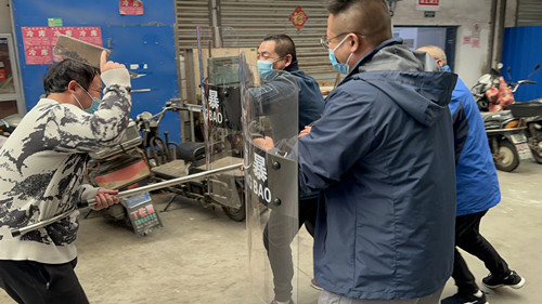 本次演練由水產(chǎn)肉類交易區(qū)經(jīng)理室牽頭,主管范淵帶隊進行現(xiàn)場講解、演練。演練現(xiàn)場,一名“歹徒”手持刀具欲強行闖入交易區(qū),現(xiàn)場班組長章偉立即上報,匯同主管范淵、辦事員程繼楠密切配合,迅速將“歹徒”控制并帶離,奪下刀具,成功化解了危機。