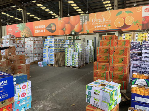 新開業(yè)的八號(hào)棚里面,商戶云集,擺放歸整的水果琳瑯滿目,運(yùn)送新鮮的水果車輛來(lái)來(lái)往往,一派紅火的景象。開業(yè)首日,市場(chǎng)內(nèi)的商戶還各自推出了不同的促銷活動(dòng)。泰國(guó)的榴蓮850元/箱,一箱6個(gè);越南火龍果50元/箱;藍(lán)莓140元/箱;澳橙170元/箱;同品質(zhì)水果比市場(chǎng)價(jià)格要低到10%至20%左右,吸引了不少客戶前來(lái)挑選購(gòu)買。從貨物擺放、水果陳列以及現(xiàn)場(chǎng)打票系統(tǒng)的操作與使用,每個(gè)環(huán)節(jié)都有人手把手指導(dǎo),讓八號(hào)棚呈現(xiàn)出與以往的不同風(fēng)貌。