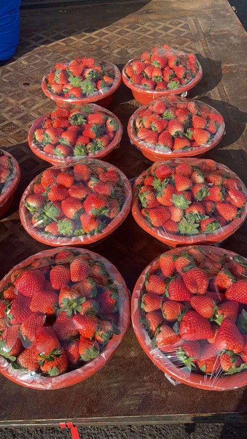 寒冬時節(jié),正值草莓陸續(xù)成熟。從11月中上旬開始,就有少量本地草莓在水果交易區(qū)內上市。一顆顆鮮紅的草莓格外惹人喜愛。一盆草莓重量在3斤左右,價格基本在22元/斤左右。