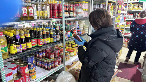 干貨配送區(qū)根據(jù)國(guó)家食品安全示范城市創(chuàng)建重點(diǎn)工作清單和食品銷售日常管理自查表進(jìn)行對(duì)照檢查,主要圍繞以下幾點(diǎn):一是經(jīng)營(yíng)戶有無(wú)過(guò)期食品銷售,如有發(fā)現(xiàn)督促經(jīng)營(yíng)戶現(xiàn)場(chǎng)銷毀;二是進(jìn)銷臺(tái)賬和“一票通”使用是否規(guī)范;三是保健食品是否專柜銷售,同時(shí)在專柜顯著位置是否標(biāo)明“保健食品”字樣;四是貨物是否隔墻離地、是否越線超高、是否占用消防通道。檢查過(guò)程中,網(wǎng)格員對(duì)發(fā)現(xiàn)的問(wèn)題會(huì)及時(shí)反饋,并督促經(jīng)營(yíng)戶整改。