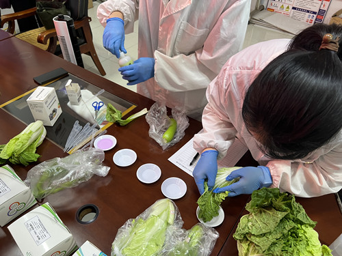 活動現場設置了“你點我檢”快檢點,現場快檢農產品,不少經營戶和消費者拿著自己的大白菜、芹菜、茄子等前來檢測,讓消費者和經營戶近距離觀看檢測過程,成為食品安全的參與者、見證者和監督者。部分經營戶和消費者對農藥殘留快篩檢測試劑盒很感興趣,他們表示想在購買或進貨前先用試劑盒檢測,避免買到農藥殘留超標的菜品。“你點我檢”活動拉近了經營戶、消費者與農產品檢驗檢測的距離,進一步提高了食品安全防范意識,增強了廣大群眾食品安全自我保護能力。