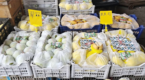 據水果區經營戶介紹:梨子從7月上旬到8月下旬都有新果上市,價格也不貴,愛吃鮮果的市民可以一飽口福。(水果區 曹丹丹)