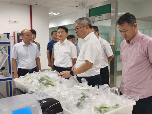 考評組實地考察了通農物流蔬菜交易區和農產品檢驗檢測中心。在通農物流檢驗檢測中心觀看了通農物流的宣傳片,查看了農產品檢驗檢測工作情況,并重點詢問了市場農產品溯源系統的推進情況、農產品檢驗檢測合格率及不合格處置情況。通農物流黨總支書記、董事長闞君成向考評組介紹了通農物流目前的運營情況,并就食品安全及“菜籃子”產品供給、流通、調控等方面工作進行了深入交流。