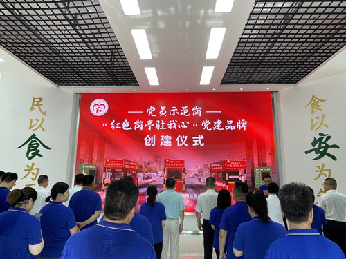 創建儀式上,通農物流黨總支副書記、總經理孟宏首先介紹了“紅色崗亭駐我心”黨建品牌的核心內涵:紅色崗亭是蔬菜區現場業務組的日常工作場所,也是每日進場交易車輛進入通農物流的第一道關口,肩負菜價采集、菜品確認、交易費收取和車輛引導等工作。在“紅色崗亭駐我心”品牌建設中,通農物流堅持把服務民生放在首位,將服務作為黨建工作的出發點和落腳點,并著重培養一線關鍵崗位的榜樣力量。創建“紅色崗亭駐我心”黨建品牌在于傳承紅色精神,銘記黨紀條例,展現堅守初心與服務民生使命,發揮黨員先鋒模范作用,營造公平公正營商環境,促進企業高質量發展。集團黨委副書記、工會主席楊曙春在創建儀式上要求通農物流第二黨支部要以“紅色崗亭駐我心”黨建品牌創建為契機,深化黨建引領,發揮好政治效應;增強內在動力,發揮好經濟效應;激發品牌效能,發揮好社會效應,全力打造百姓滿意的農產品批發市場。